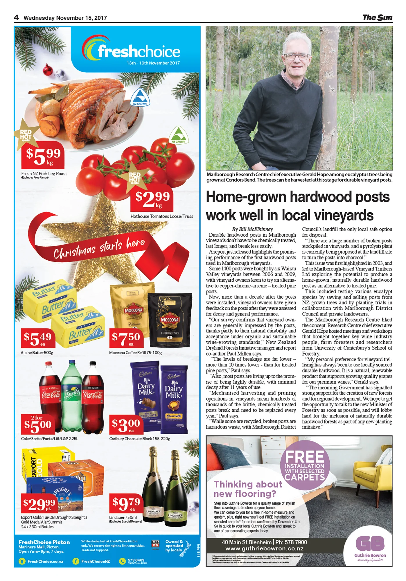 Sam Kilpatrick March 5, 2018 Home-grown hardwood posts work well in local vineyards Sam Kilpatrick March 5, 2018 Article from The Sun - Blenheim, MarlboroughWednesday November 15, 2017