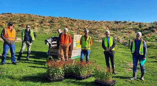 Proseed CEO, Shaf van Bellekom, Canterbury’s School of Forestry head Professor Bruce Manley and Marlborough Research Centre CEO Gerald Hope were among those attending today’s planting at Awatere farmer Warwick Lissaman’s property.